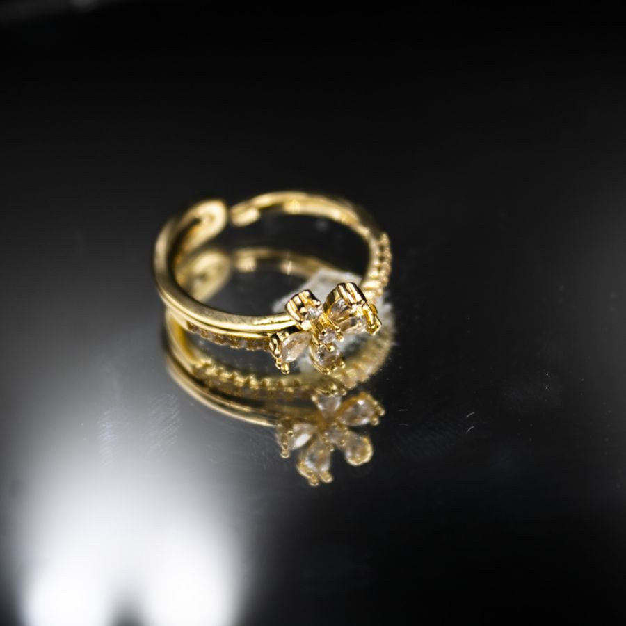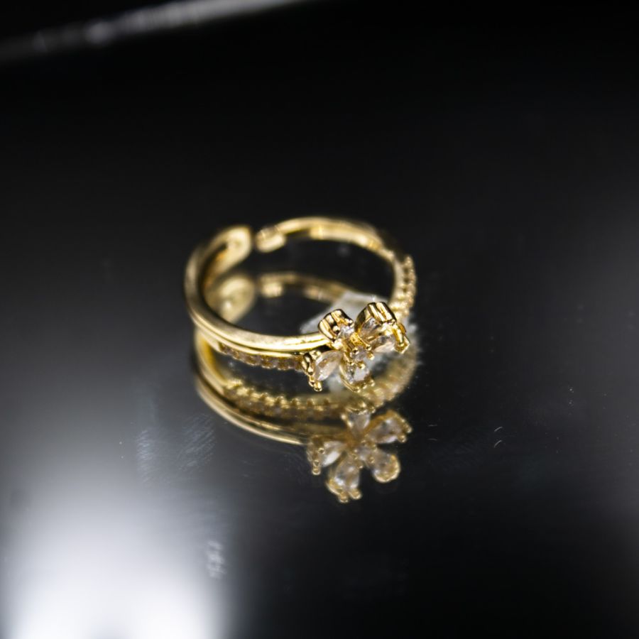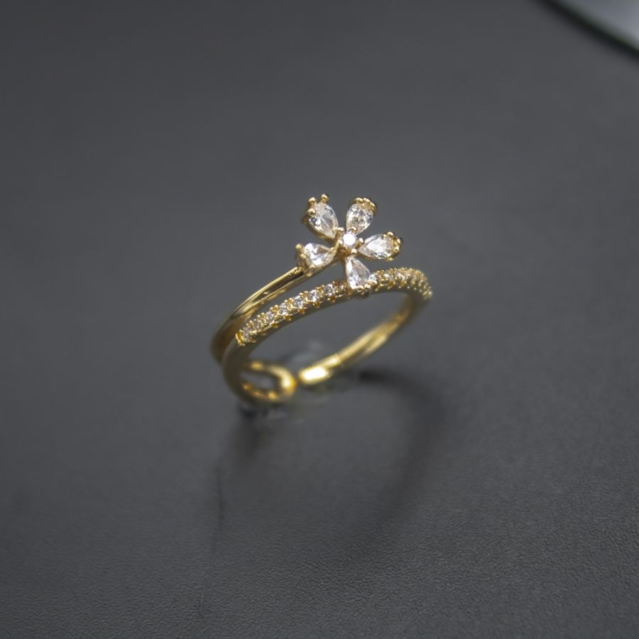 خاتم ذهبي أنيق بتصميم وردة مرصعة بالزركون
